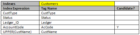 The second of the two Word tables (Figure 2) contains details of the indexes. This table is optional; if the target database table has no indexes, just leave it out.