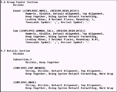 However, a moment's thought told us that even that tortuous procedure was not the end of the story. Although it would have successfully found the fields that were placed directly in the report, it would have missed any fields that were embedded in Crystal formulae, SQL expressions, sort orders, selection criteria, sub reports and other types of report objects. It would have been possible to programmatically access each of those objects and to extract the fields from them, but it would have been a lot of work to do so.