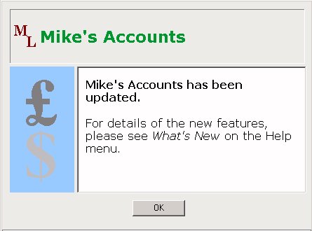 [1] RunAlways Filename=/MyExecutable.EXE FileVersion=1.9.0 AdditionalFile=http://www.MySite.com/MyHelp.CHM|<CLIENTFOLDER>|<NA>| NoSuccessMessage FinalMessage=<body scroll="no"><MessageBoxScale=100,80> <p style="font-weight:bold;">Mike's Accounts has been updated.</p> <p>For details of the new features, please see <i>What's New</i> on the Help menu.</p> Icon=<CLIENTFOLDER>\Graphics\Logo.ICO Bitmap=<CLIENTFOLDER>\Graphics\Company.BMP Title=Mike's Accounts<verdana,28> TitleBk=236,238,231,236,238,231 DialogBk=236,238,231 TitleTxt=0,152,48